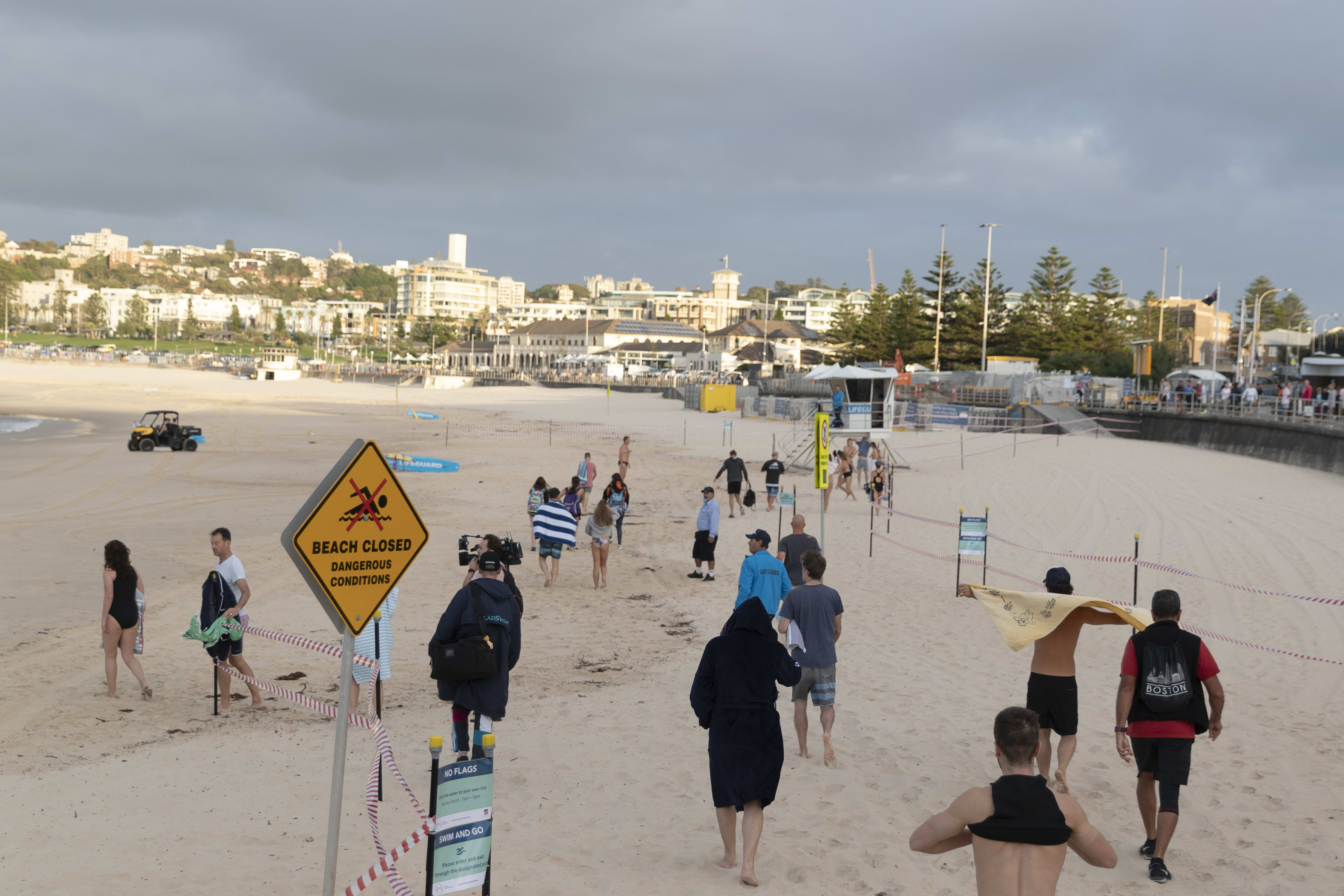 Swimmers return to Bondi beach on April 28, 2020 in Sydney, Australia.