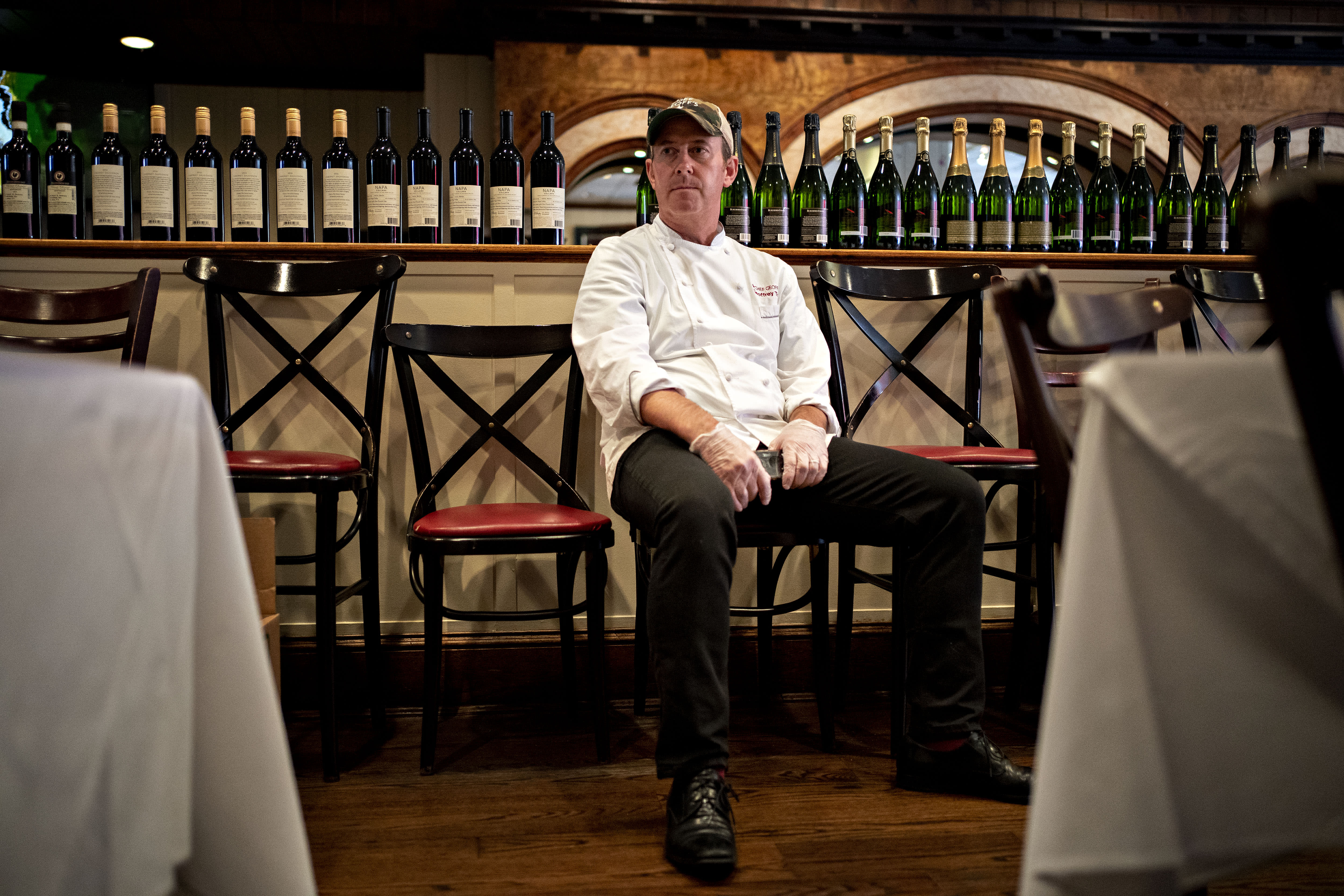 Restauranteur Geoff Tracy sits for a photograph at Chef Geoff’s restaurant in Washington, D.C., U.S., on Thursday, March 26, 2020. Images