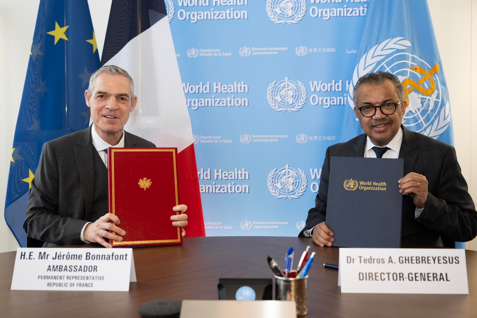 Geneva – His Excellency Jérôme Bonnafont, Permanent Representative of France to the United Nations in Geneva, and Dr Tedros Adhanom Ghebreyesus, WHO Director-General, today signed several funding agreements totaling € 25.5 million to support critical health priorities.